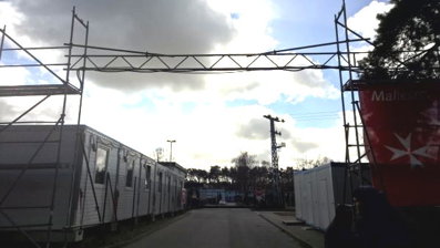 absolvieren. Von den Brillenkosten ganz zu schwei-gen. Am Lagereingang hat es eine optische Veränderung gegeben. Ein paar Container wurden zugunsten eines Parkplatzes abgebaut, die Kabelbrücke gleich mit da nicht mehr notwendig. Und, mein bösartiger Hinterge-danke, damit keiner mehr auf die Idee kommt, da oben gehört noch ein übler Spruch hin, aus unserer jüngeren Vergangenheit Jetzt isses nur noch eine Durchfahrt, gelegentlich auch für den Abschiebebus – ein Schelm der Böses dabei denkt. |